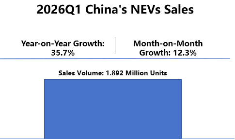 China is the global core market of new energy vehicles, and its industry has stepped into a golden period of large-scale and rapid growth. The penetration rates of electrification, intelligence and connectivity are continuously rising, showing strong market development momentum. According to data from the China Association of Automobile Manufacturers, China’s new energy vehicle sales reached 1.892 million units in the first quarter of 2026, with a year-on-year increase of 35.7% and a month-on-month growth of 12.3%. China has ranked first in global production and sales volume of new energy vehicles for eight consecutive years, and keeps releasing vigorous market growth vitality.